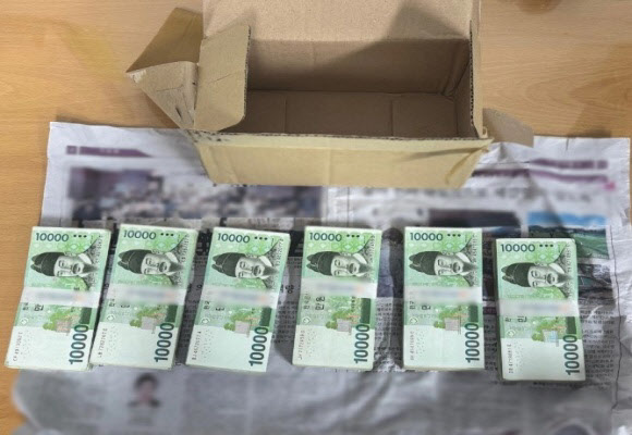 무고 혐의를 받는 70대 피의자가 출석 요구를 받자 담당 경찰관에게 보낸 현금다발. (사진=부산 사하경찰서 제공)