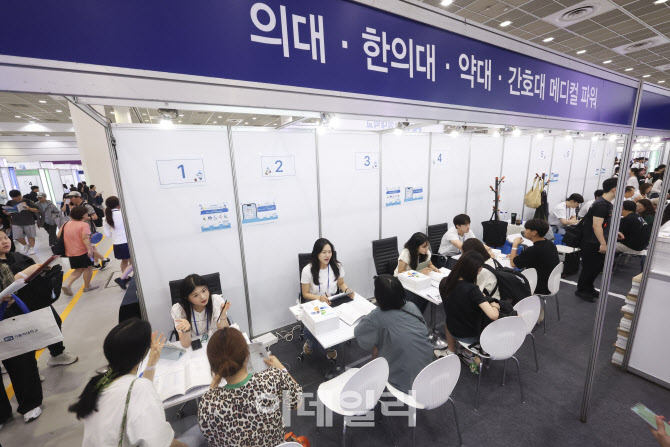 2026학년도 수시 대학입학정보박람회가 열린 지난 7월 24일 서울 강남구 코엑스에서 수험생들과 학부모들이 입시 상담을 받고 있다.(사진=뉴시스)