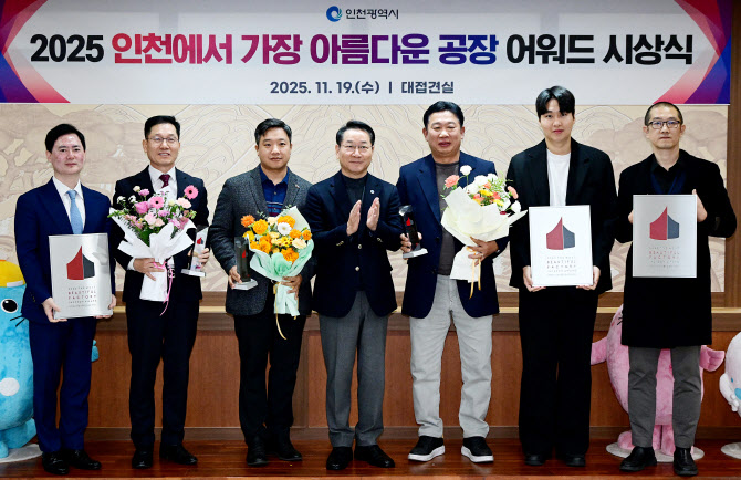 유정복 인천시장은 19일 시청 대접견실에서 김동헌 유일로보틱스 대표, 이종수 그린리소스 대표, 선학규 월드웰 대표에게 아름다운 공장 트로피와 현판을 수여했다.