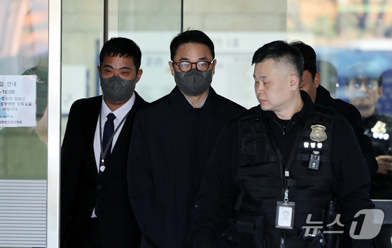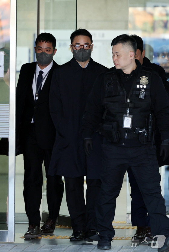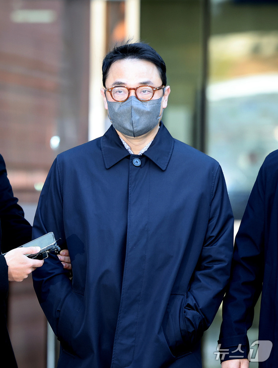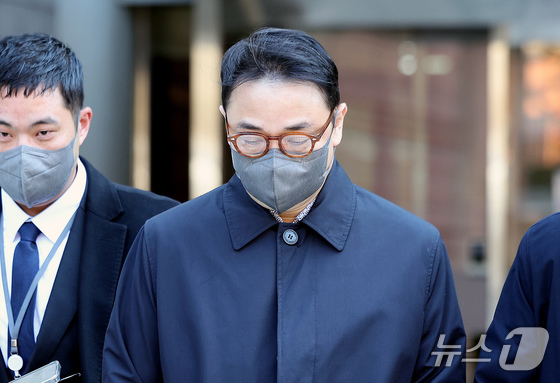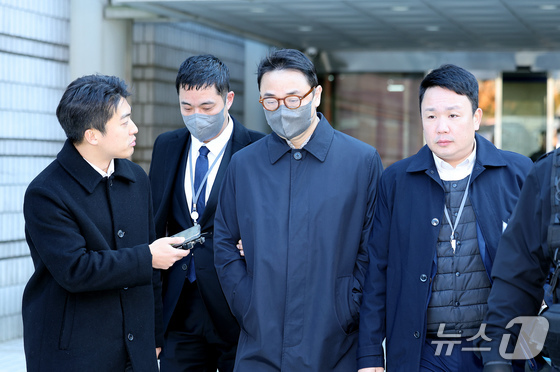 양평 공흥지구 개발 특혜 의혹에 연루된 김건희 여사의 오빠 김진우씨가 19일 서울 서울 서초구 서울중앙지법에서 열린 구속 전 피의자 심문(영장실질심사)을 마친 뒤 법원을 빠져나가고 있다. 2025.11.19/뉴스1 © News1 이호윤 기자