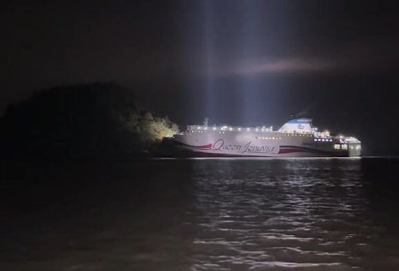 19일 오후 8시 17분께 전남 신안군 장산도 남방 족도에 여객선 퀸제누비아2호가 좌초돼 해경이 구조 작업을 벌이고 있다.(사진=연합뉴스)