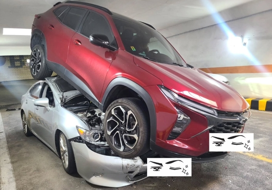 피해자가 올린 사진 등 내용에 따르면 사고 차량은 경사면에서 잠시 정차한 뒤 갑자기 후진과 풀악셀이 동시에 들어가며 아래 구역에 주차돼 있던 차량을 그대로 덮쳤다.