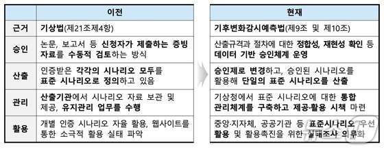 정책 신뢰도를 높이기 위해 ‘시나리오 승인제도’도 새로 도입됐다. 지금까지는 기관들이 자체 산출한 자료를 근거로 정책에 활용했지만, 앞으로는 기상청이 정한 기준에 적합한지 심사해 승인한 시나리오만 표준시나리오 산출에 반영된다. 올해 5개 기관이 승인을 신청했고, 심사 결과는 기후정보포털에 공개될 예정이다.