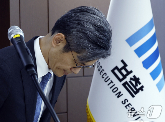 박철우 신임 서울중앙지검장이 21일 오전 서울 서초구 서울중앙지방검찰청에서 열린 제66대 서울중앙지방검찰청 검사장 취임식에서 취임사를 위해 단상에 올라 고개 숙여 인사하고 있다. 2025.11.21/뉴스1 © News1 박정호 기자