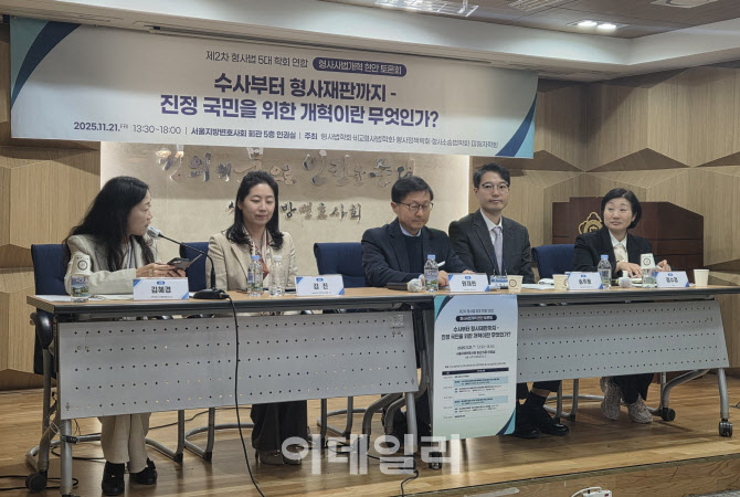 한국형사법학회·한국비교형사법학회·한국형사정책학회·한국형사소송법학회·한국피해자학회 등 형사법 5대 학회가 21일 서울 서초구 서울지방변호사회관에서 형사사법 개혁 현안 토론회를 열었다. (사진=성가현 기자)