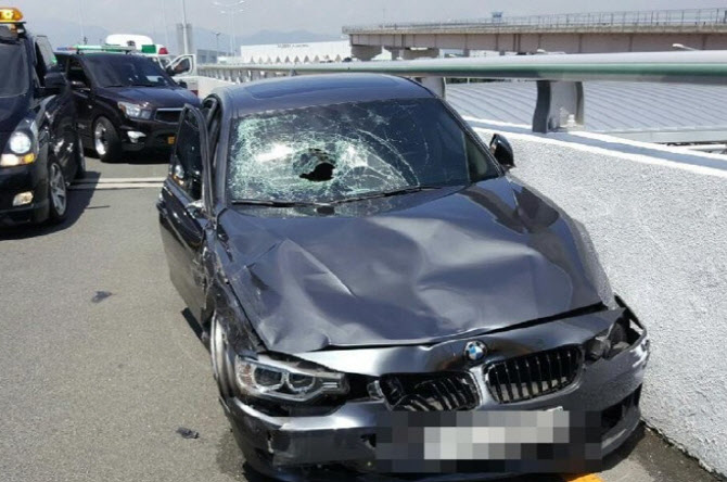 2018년 7월 10일 부산 강서구 김해공항 2층 국제선 청사 진입로에서 택시기사를 충격한 BMW. (사진=연합뉴스)