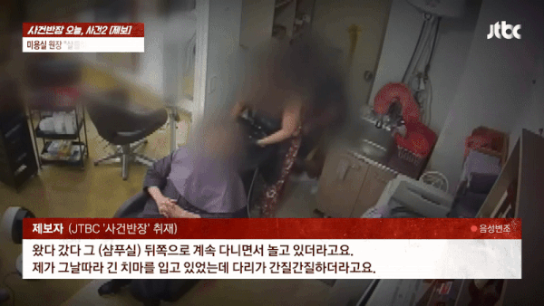 마지막은 2년간 챙겨줬던 40대 미용사를 불법 촬영하는 남학생의 모습이 담긴 CCTV 영상입니다. 미용사가 다른 손님의 머리를 감겨주는 사이 남학생은 미용사의 뒤쪽으로 접근한 뒤, 쭈그려 앉아 치마 밑으로 휴대전화를 들이밀었습니다. 미용사가 이를 발견하고 지켜보는데도 남학생은 촬영에 집중했고, 결국 미용사가 남학생의 손을 발로 차자 그제야 촬영을 멈췄습니다. 심지어 이 남학생의 범행은 이번이 처음이 아니었으며, 과거 이 같은 범죄로 소년원에 다녀온 전력도 있었습니다. 사건 이후 남학생은 "죄송하다"면서도 "주변에 알리지 말아달라"고 부탁하는 등 반성 없는 태도를 보였습니다. 남학생의 아버지 역시 제대로 된 사과 없이 "그런 아들을 둔 적 없다"며 책임을 회피했습니다. 남학생은 불법 촬영으로 기소돼 현재 재판을 받고 있습니다. 미용사는 "이 사건으로 인류애가 무너졌다. 믿었던 학생에게 상당히 배신감 든다"고 토로했습니다.