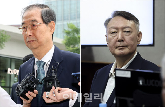 한덕수(왼쪽) 전 국무총리와 윤석열 전 대통령 (사진=이데일리 방인권·이영훈 기자)