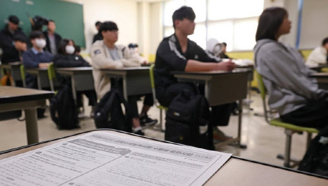 2026학년도 대학수학능력시험을 하루 앞둔 12일 서울 은평구 은평고등학교에서 수험생들이 수험표 배부를 기다리고 있다.(사진=연합뉴스)