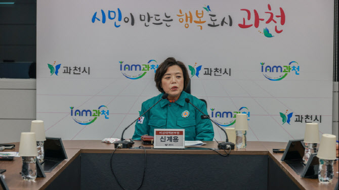 신계용 과천시장이 24일 비상대책본부 회의에서 수돗물 깔따구 유충 상황 종료를 선언하고 있다.(사진=과천시)