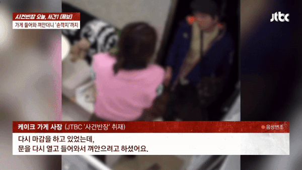 지난 24일 JTBC '사건반장'에 따르면 30대 여성 사장 A 씨는 홀로 케이크 가게를 운영하던 중 찾아온 낯선 노인 때문에 두려움에 떨고 있다.