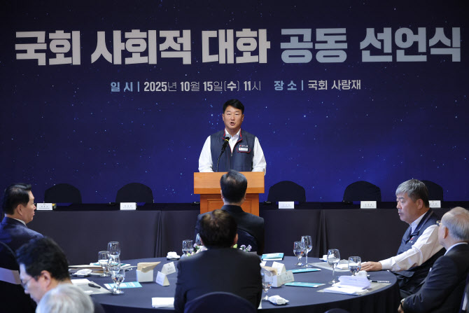 양경수 민주노총 위원장이 지난 10월 15일 서울 여의도 국회 사랑재에서 열린 사회적 대화 공동선언식에서 인사말을 하고 있다.(사진=연합뉴스)