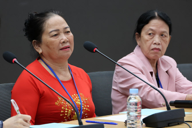 지난 6월 서울 여의도 국회 의원회관에서 열린 베트남전 인권침해 진실규명을 위한 국회 토론회에서 퐁니학살 피해 생존자인 응우옌티탄(왼쪽) 씨와 하미학살 피해 생존자인 응우옌티탄 씨가 학살 당시 상황을 증언하고 있다. (사진= 연합뉴스)