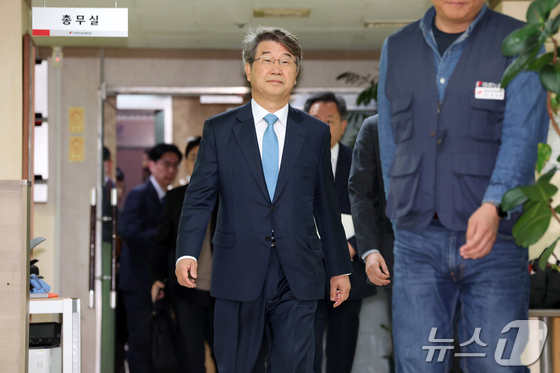김지형 경제사회노동위원회 위원장이 25일 오전 서울 중구 민주노총에서 양경수 전국민주노동조합총연맹 위원장을 예방하기 위해 들어서고 있다. 민주노총이 경사노위(당시 노사정위원회) 관계자와 공식 회동을 갖는 것은 1999년 2월 이후 처음이다. (공동취재) 2025.11.25/뉴스1 © News1 김민지 기자