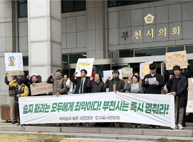부천 단체 33곳으로 구성된 ‘역곡습지 보존 시민연대’ 회원들은 지난 24일 부천시의회 앞에서 기자회견을 열고 LH의 역곡습지 매립 계획을 철회하라고 촉구했다. 이 단체는 습지를 영구적으로 보존하기 위해 부천시가 행정 절차에 착수하라고 요구했다.