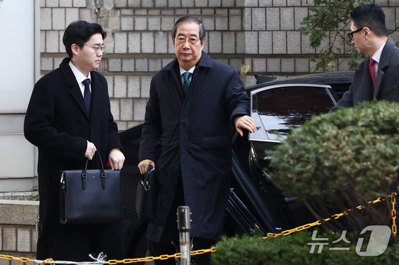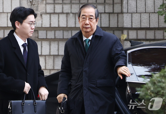 윤석열 전 대통령의 12·3 비상계엄을 적극적으로 말리지 않은 혐의로 재판에 넘겨진 한덕수 전 국무총리가 26일 오전 서울 서초구 서울중앙지방법원에서 열린 내란 우두머리 방조, 내란 중요임무 종사 등 혐의 사건 1심 결심 공판에 출석하기 위해 차량에서 내리고 있다. 2025.11.26/뉴스1 © News1 김민지 기자