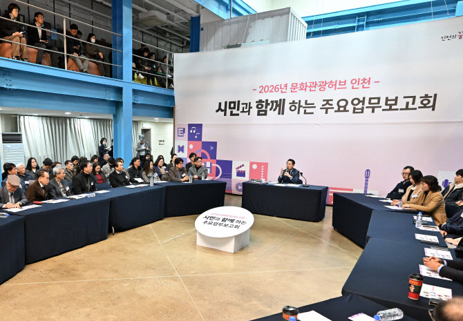 유 시장은 “올 연말 미추홀구에서 인천뮤지엄파크를 착공하고 내년 검단신도시에서 백년이음도서관 건립을 시작한다”며 “다양한 문화시설을 짓고 정책을 강화해 인천의 문화 경쟁력을 키우겠다”고 밝혔다. 또 “인천은 창조형 도시”라며 “시민이 함께하면 문화가 강한 도시를 만들 수 있다”고 강조했다.