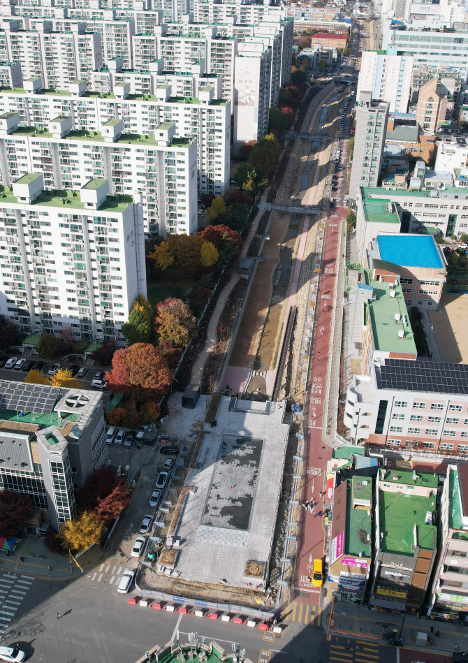 하천 복원을 위해 부평구는 1000m 가량 콘크리트로 덮인 하수암거(사각 터널) 등 구조물을 철거하고 어류서식처와 산책로, 제방벽 등을 마련했다. 하수는 따로 분류해 하천 주변에 새로 만든 지하터널로 흘려 보낸다. 하천 중간에는 징검다리와 보도교를 설치해 시민의 이동 편의를 보장했다. 전체 사업비는 국비, 지방비 등을 포함해 845억원이 소요됐다.