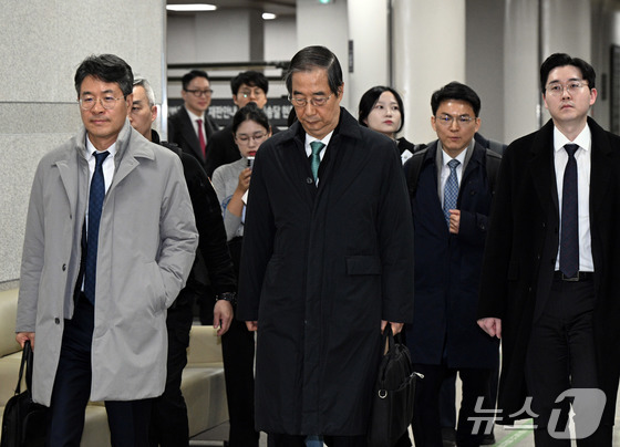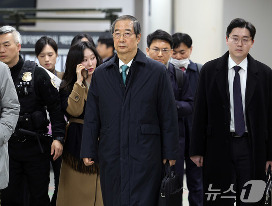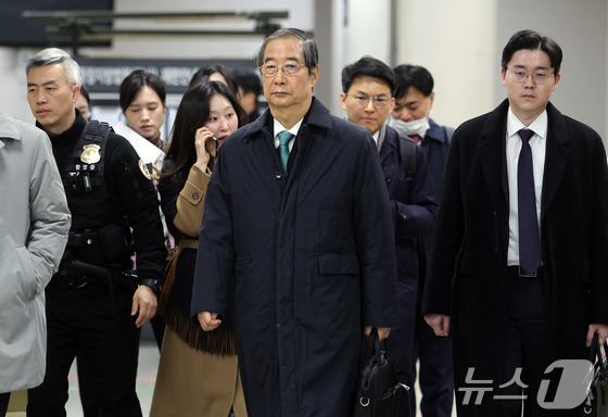 한덕수 전 국무총리가 26일 서울 서초동 서울중앙지법에서 열린 결심공판을 마치고 법원을 나서고 있다. (공동취재)2025.11.26/뉴스1 © News1 김민지 기자