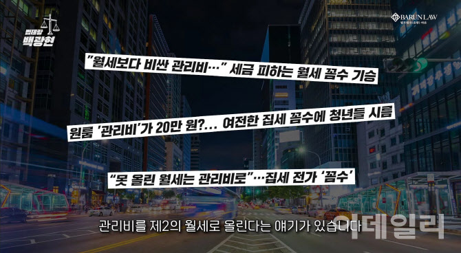 백 변호사는 실제 사례를 들어 설명했다. 보증금 500만 원에 월세 70만 원짜리 원룸에 사는 B씨. 계약 당시 관리비는 8만 원이었다. 그런데 몇 달 뒤 집주인이 전기료와 청소비 인상을 이유로 관리비를 15만 원으로 올리겠다고 통보했다. 거의 2배에 가까운 인상이다.