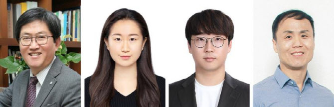 (왼쪽부터)고려대의 주진수 물리학과 교수(교신저자), 권다영 박사과정(공동 제1저자), 이상훈 박사(공동 제1저자), 김정용 성균관대 에너지과학과 교수(공동 교신저자). (사진=고려대)