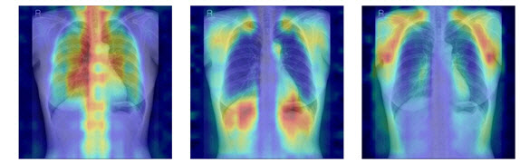 흉부X선에서 파운데이션 모델이 골다공증 판독을 위해 주목한 영역을 시각화한 이미지.