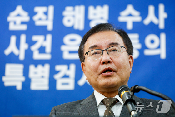 이 특검은 "나라의 부름을 받아 군 복무 중이던 해병대원이 작전 수행 중 안타깝게 목숨을 잃었고, 철저한 조사를 통해 책임자를 가려야 했던 수사는 대통령실과 국방부의 조직적인 외압으로 방해를 받았다"면서 "특검은 윤 전 대통령의 격노가 있었다는 사실을 밝혀냈고 이를 계기로 임 전 사단장을 혐의자에서 빼기 위한 조직적인 직권남용 범행을 저지른 사실, 박정훈 단장에 대해 가해진 일련의 보복 조치를 확인했다"고 말했다.