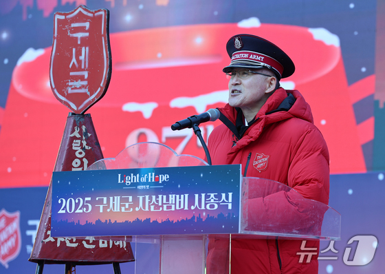 김병윤 구세군 사령관이 28일 오전 서울 광화문광장에서 열린 2025 구세군 자선냄비 시종식에서 인사말을 하고 있다. 2025.11.28/뉴스1 © News1 오대일 기자