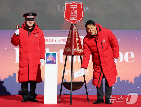 28일 서울 광화문광장 놀이마당에서 '2025 구세군 자선냄비 시종식'이 열렸다.