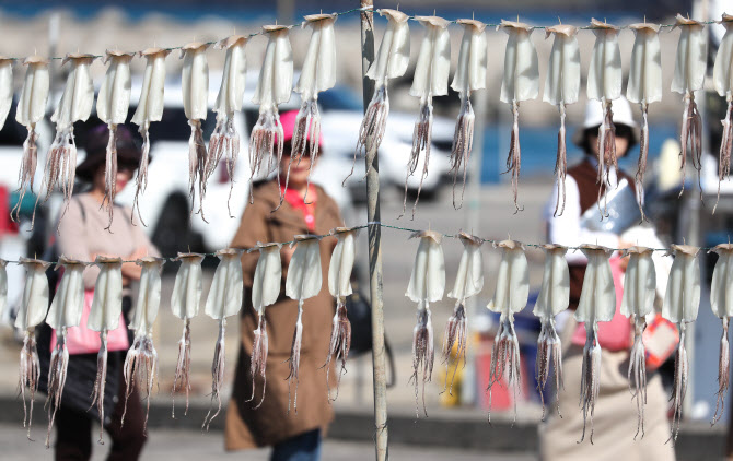 맑은 날씨를 보인 5일 오전 제주시 한경면 고산리 차귀도포구에서 오징어가 가을 햇살 아래서 건조되고 있다.(사진=뉴시스)
