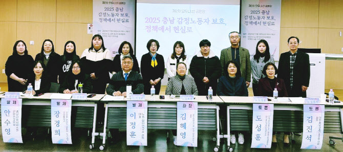 충청남도노동권익센터(센터장 한정애)는 28일 오후 2시 아산 캠코인재개발원 3층 다목적홀에서 열린 ‘2025 충남 감정노동 보호, 정책에서 현실로’ 공론장에서 도내 민간부문 감정노동자 규모를 33만 5000명으로 추정하고, 농협·유통·의료돌봄 3대 분야를 대상으로 한 첫 실태조사 결과 공개했다. (사진=충청남도노동권익센터).