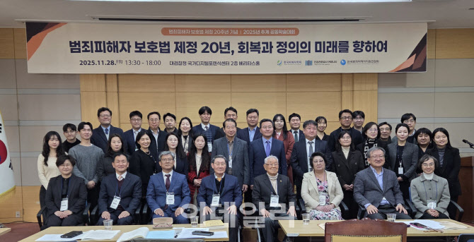 한국피해자학회·인권전문검사 커뮤니티·전국범죄피해자지원연합회는 28일 대검찰청 국가디지털포렌식센터에서 범죄피해자 보호법 제정 20주년을 맞아 2025년 추계 공동학술대회를 열어 기념사진을 촬영하고 있다. (사진=성가현 기자)