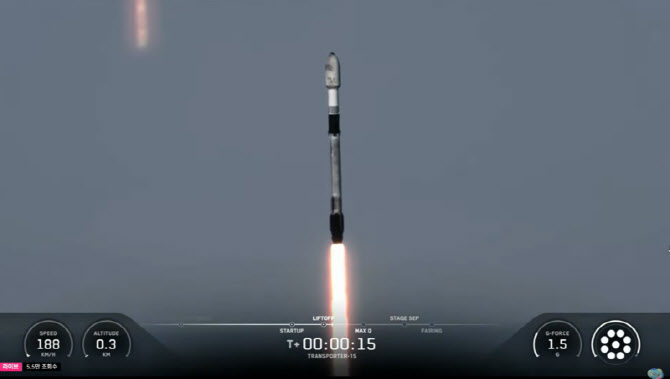 경기기후위성이 실린 스페이스엑스(SpaceX) 펠컨9 로켓이 29일 한국시간 새벽 3시 44분 미국 캘리포니아 반덴버그 우주군기지에서 발사되고 있다.(사진=경기도 유튜브 채널)