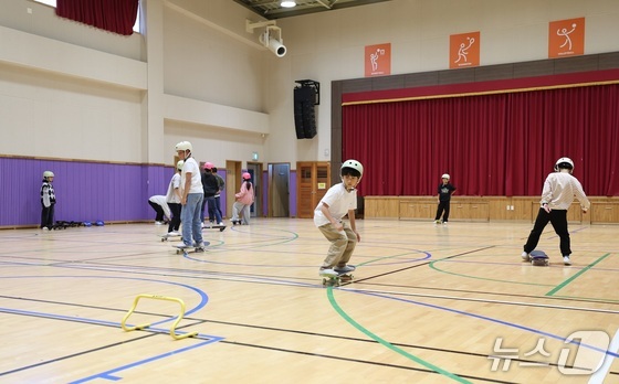 제주 평대초 학생들이 직접 보드를 타며 배우고 있는 모습.(서울시교육청 제공)