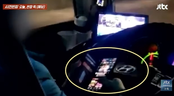 운전중 휴대전화로 유튜브룰 시청하고 있는 버스기사. 출처=사건반장