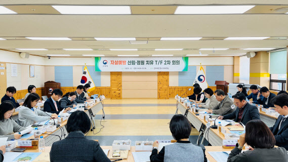 1일 산림청 관련 부서와 한국산림복지진흥원, 한국수목원정원관리원 등 산림청 산하 공공기관과 자살예방지원 전문 기관 관계자들이 참석한 가운데 자살예방 산림정원치유 TF 2차 회의가 열리고 있다. (사진=산림청 제공)