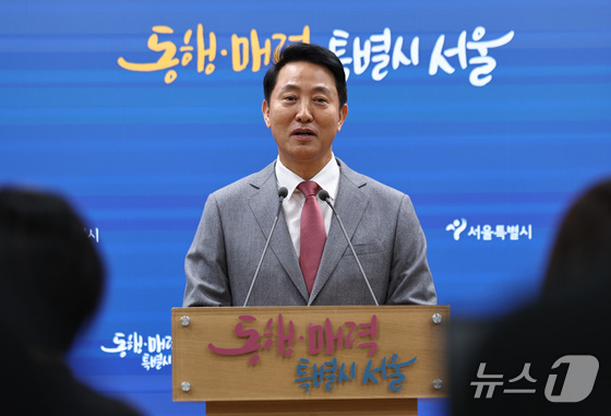 오세훈 서울시장이 1일 오후 서울시청 브리핑실에서 김건희 특검이 오 시장을 '명태균 여론조사비' 대납 혐의로 기소한 것과 관련해 입장을 밝히고 있다. 2025.12.1/뉴스1 © News1 구윤성 기자