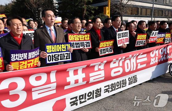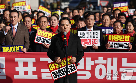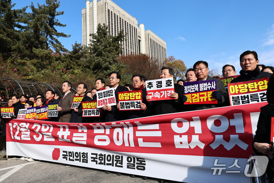 한펀 국민의힘 소속 의원들은 이날 오후 서울 서초구 서울중앙지법 앞에서 추경호 전 원내대표의 구속영장 실질심사를 규탄하는 집회를 열었다. 이번 집회에는 장동혁 의원과 송언석 원내대표 등 다수 의원이 참석했다.