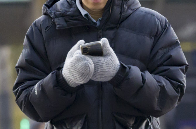 영하권 추위를 기록한 지난달 28일 오전 서울 여의도 버스환승센터에서 한 시민이 장갑을 낀 채 출근길에 나서고 있다. (사진=뉴시스)