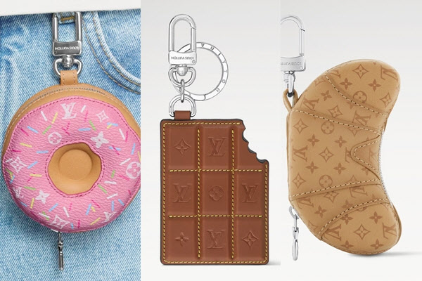 앞서 루이비통에서 출시한 간식 모양 키링이다. 왼쪽부터 도넛 141만원, 초콜릿 105만원, 크로와상 136만원에 판매 중이다. (사진=루이비통 공식 홈페이지)
