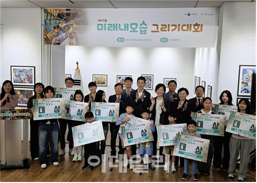 한국폴리텍대학이 주최한 제17회 미래내모습그리기대회 시상식 및 전시회에서 수상자들과 대회 관계자들이 기념 촬영을 하고 있다.