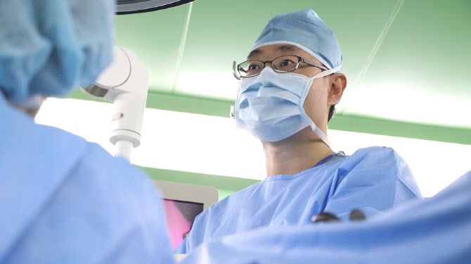 이상훈 고려대 안암병원 산부인과 교수가 로봇을 이용한 최소침습수술을 진행하고 있다. (사진=고려대 안암병원)