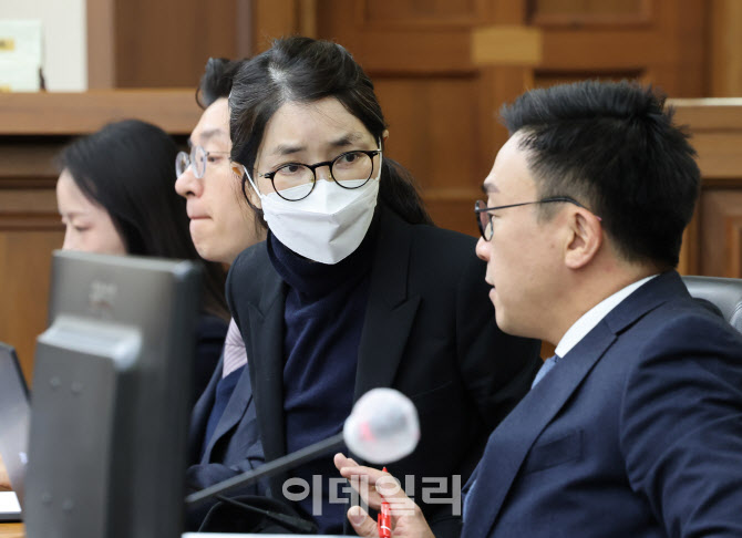 도이치모터스 주가조작과 명태균 공천개입, 통일교 청탁·뇌물 수수 의혹 혐의 등으로 구속기소 된 김건희 씨가 3일 서울 서초구 서울중앙지방법원에서 열린 자본시장법 위반 혐의 결심 공판에 출석해 변호인과 대화하고 있다. (사진=공동취재단)
