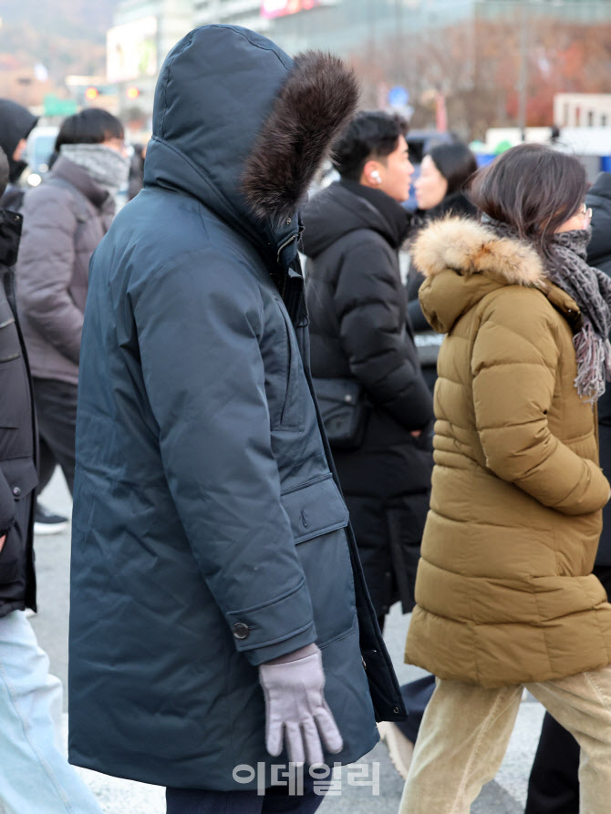 서울의 아침 기온이 영하 8도를 보이며 강추위가 찾아온 지난 3일 오전, 서울 종로구 광화문 네거리에서 두꺼운 옷을 입은 시민들이 발걸음을 재촉하고 있다.(사진=뉴시스)