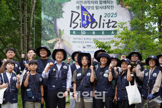 김인호 산림청장(앞줄 왼쪽 세번째)이 국립수목원에서 열린 2025 생물다양성 탐사대회에서 참가자들과 기념 촬영을 하고 있다. (사진=산림청)