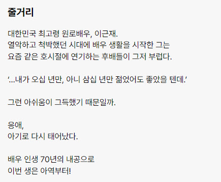 원로배우지만 이번 생은 아역부터 줄거리 (사진=카카오엔터테인먼트)