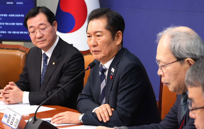 정청래 더불어민주당 대표가 4일 오후 서울 여의도 국회에서 열린 역사와정의특별위원회-국가보훈정책특별위원회 보훈·역사 분야 정책 간담회에서 발언을 하고 있다. (사진=뉴시스)