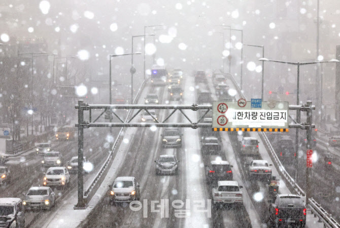 울 전역에 대설 주의보가 내려진 지난 2월 6일 오후 서울 용산구 한남대로에 함박눈이 내리고 있다.(사진=뉴시스)