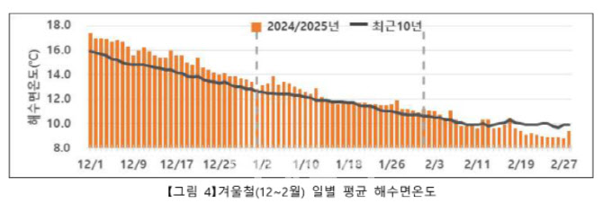 최근 10년간 겨울철(12~2월) 일별 평균 해수면 온도를 기록한 그래프(사진=기상청)