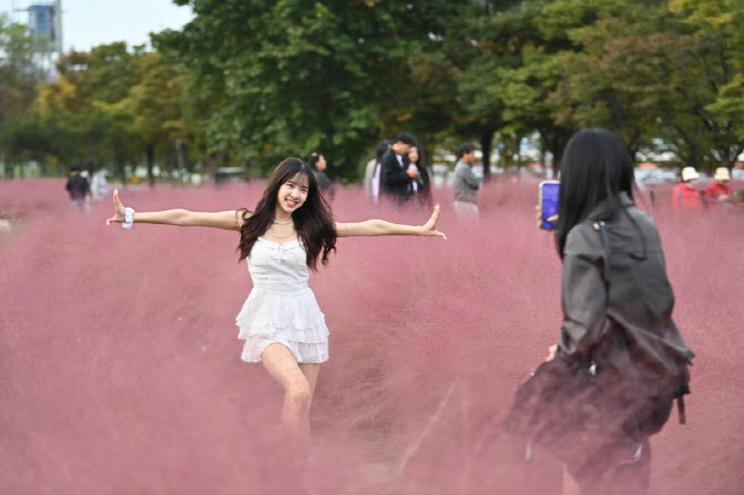 미사경정공원 핑크뮬리 꽃밭 속에서 진행된 K-POP 댄스 챌린지.(사진=하남시)